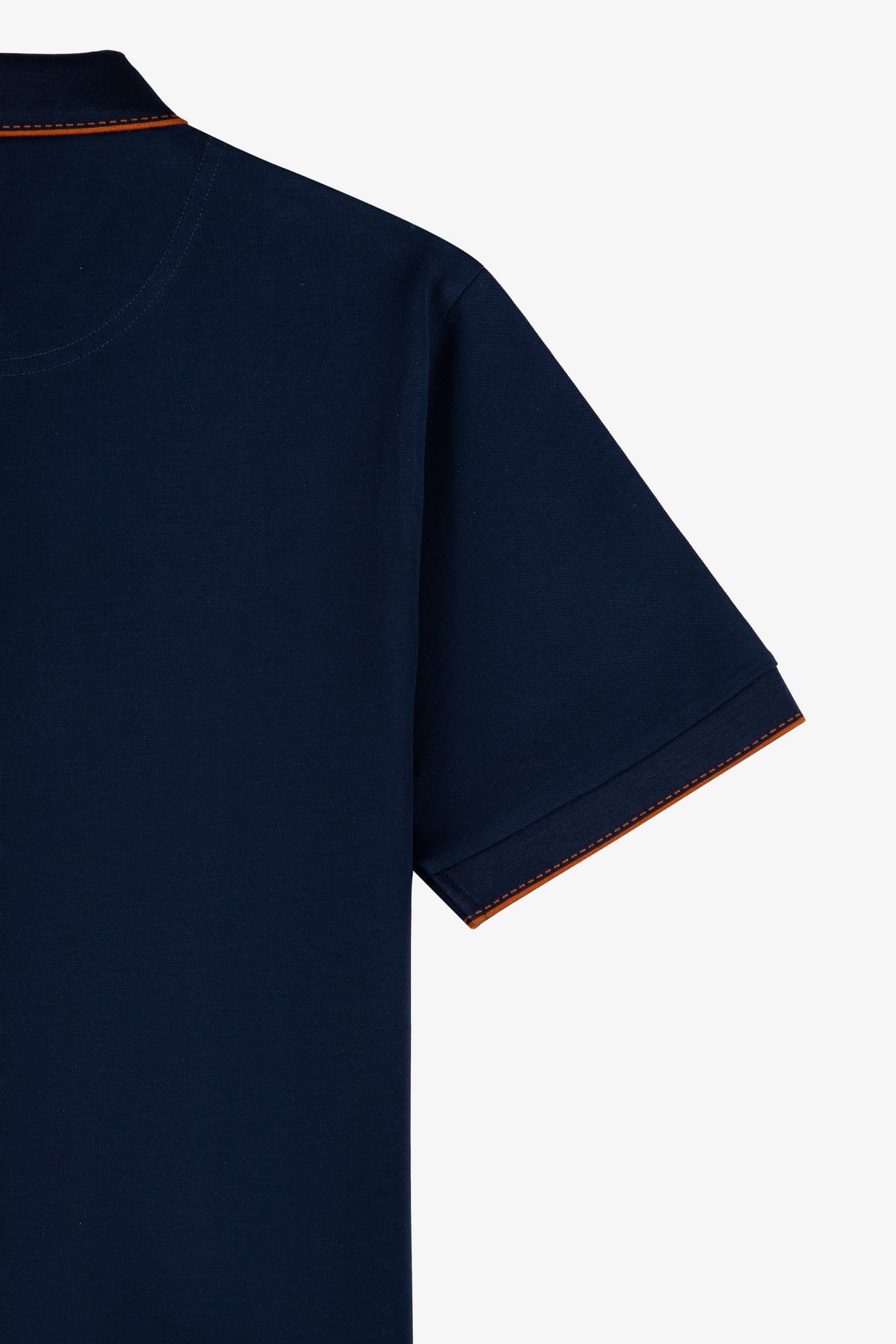 • Kiểu dáng: Regular • Thiết kế: Cổ polo có chân đứng phom, bo cổ & bo tay phối họa tiết tinh tế • Chi tiết: Nẹp 03 cúc, logo thêu ngực trái sắc nét, thể hiện dấu ấn thương hiệu một cách trang nhã và sang trọng.